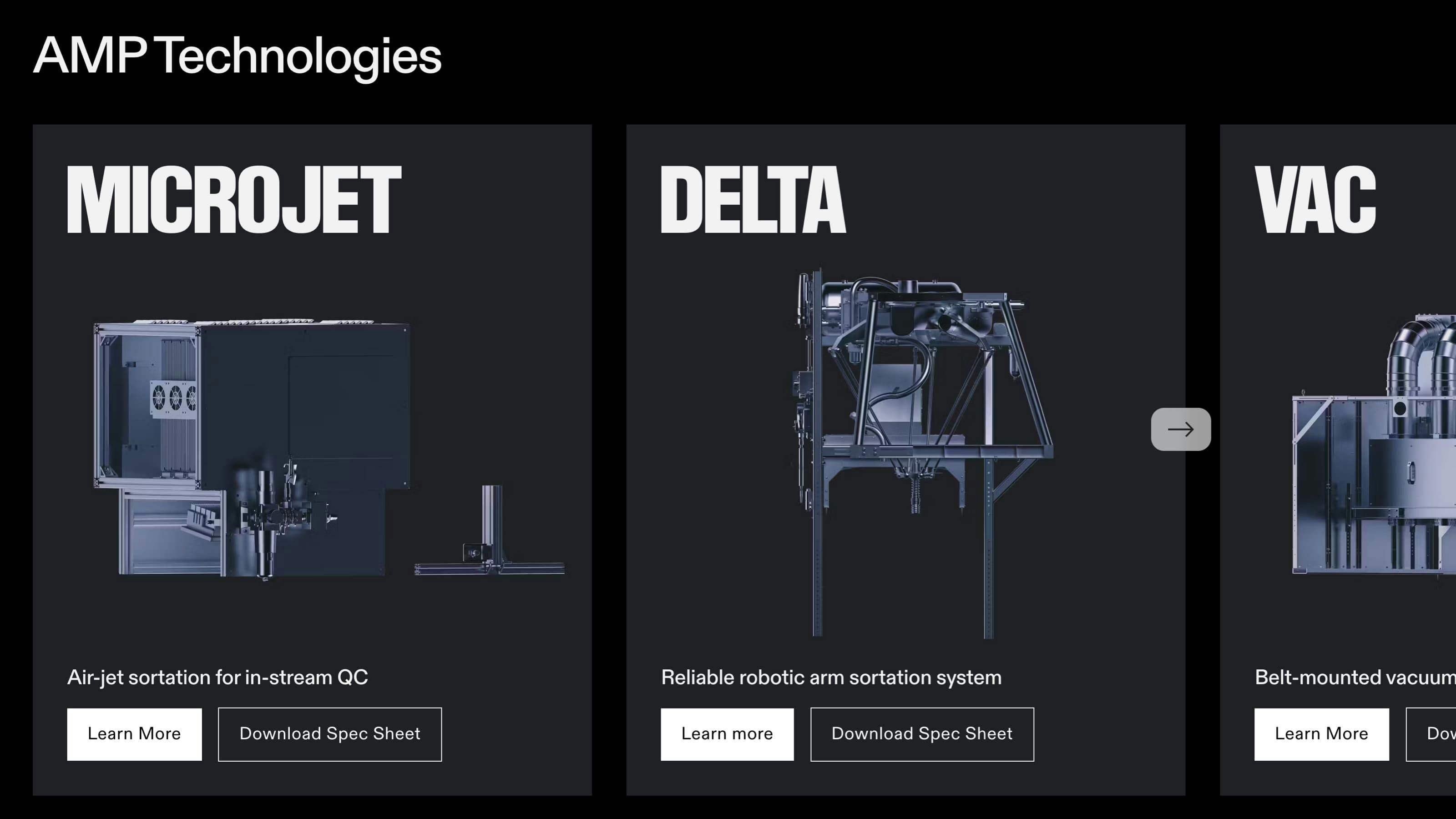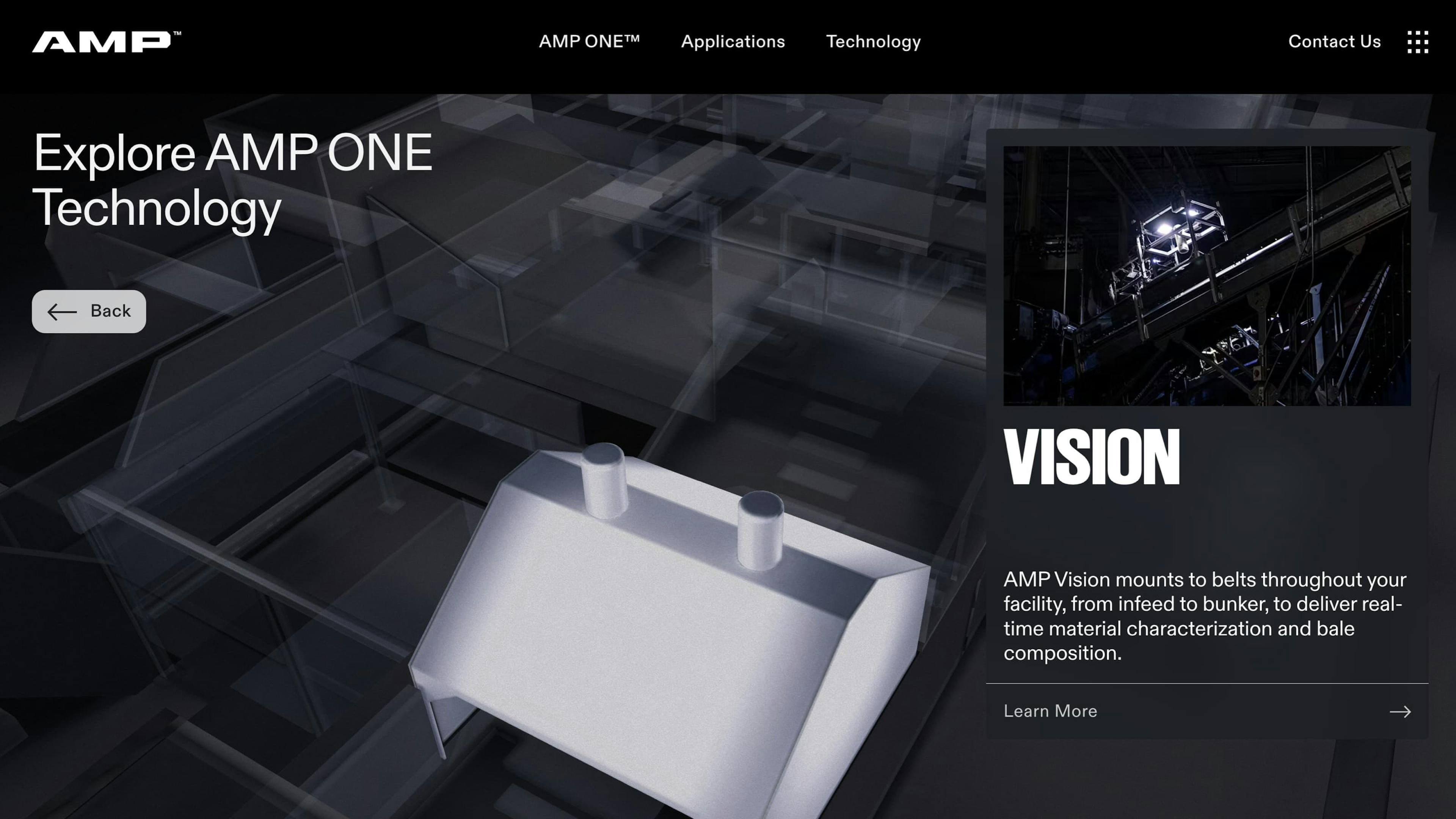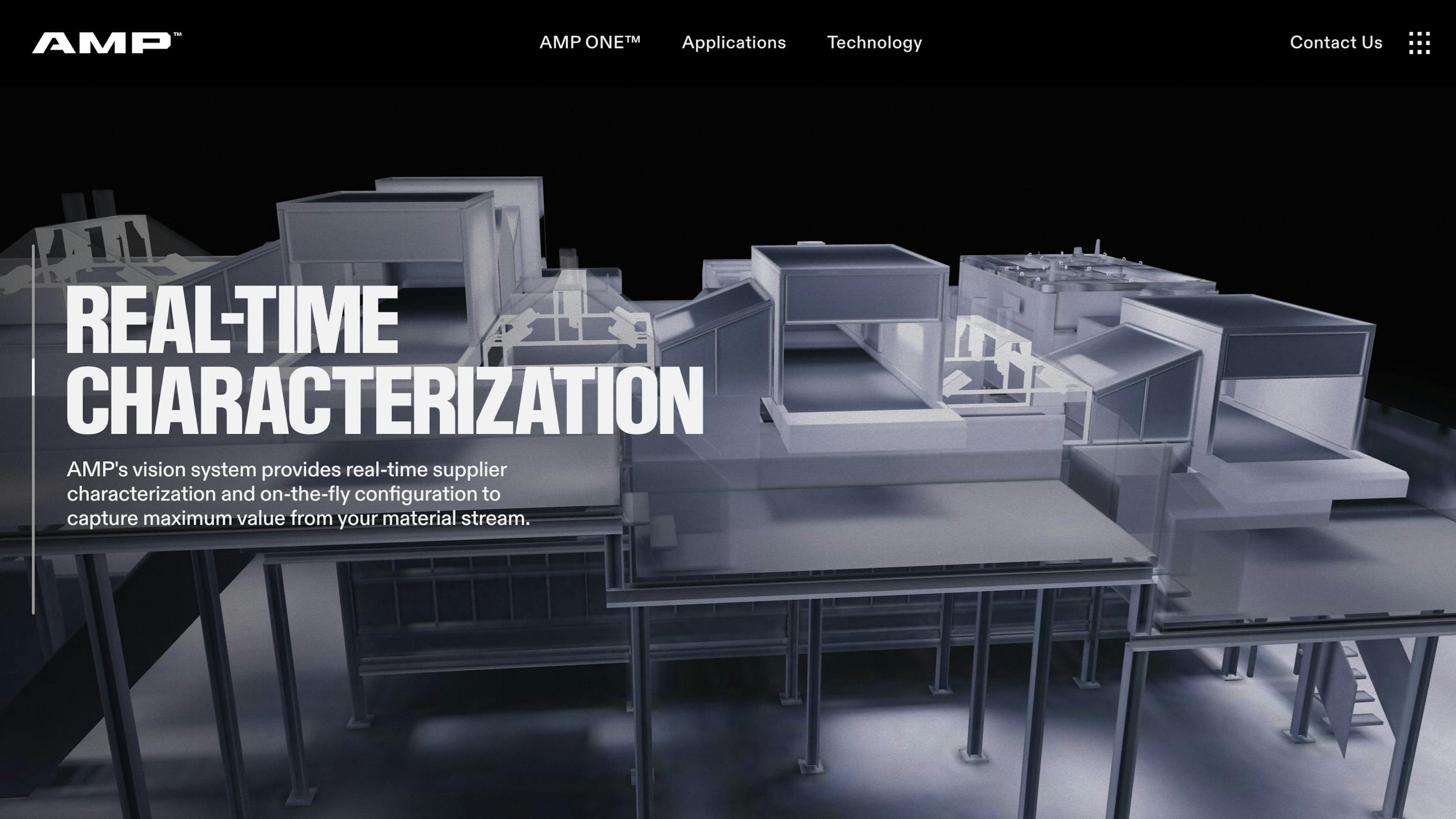 We built 3D factory walkthroughs within an immersive site for AI-powered sortation company, AMP