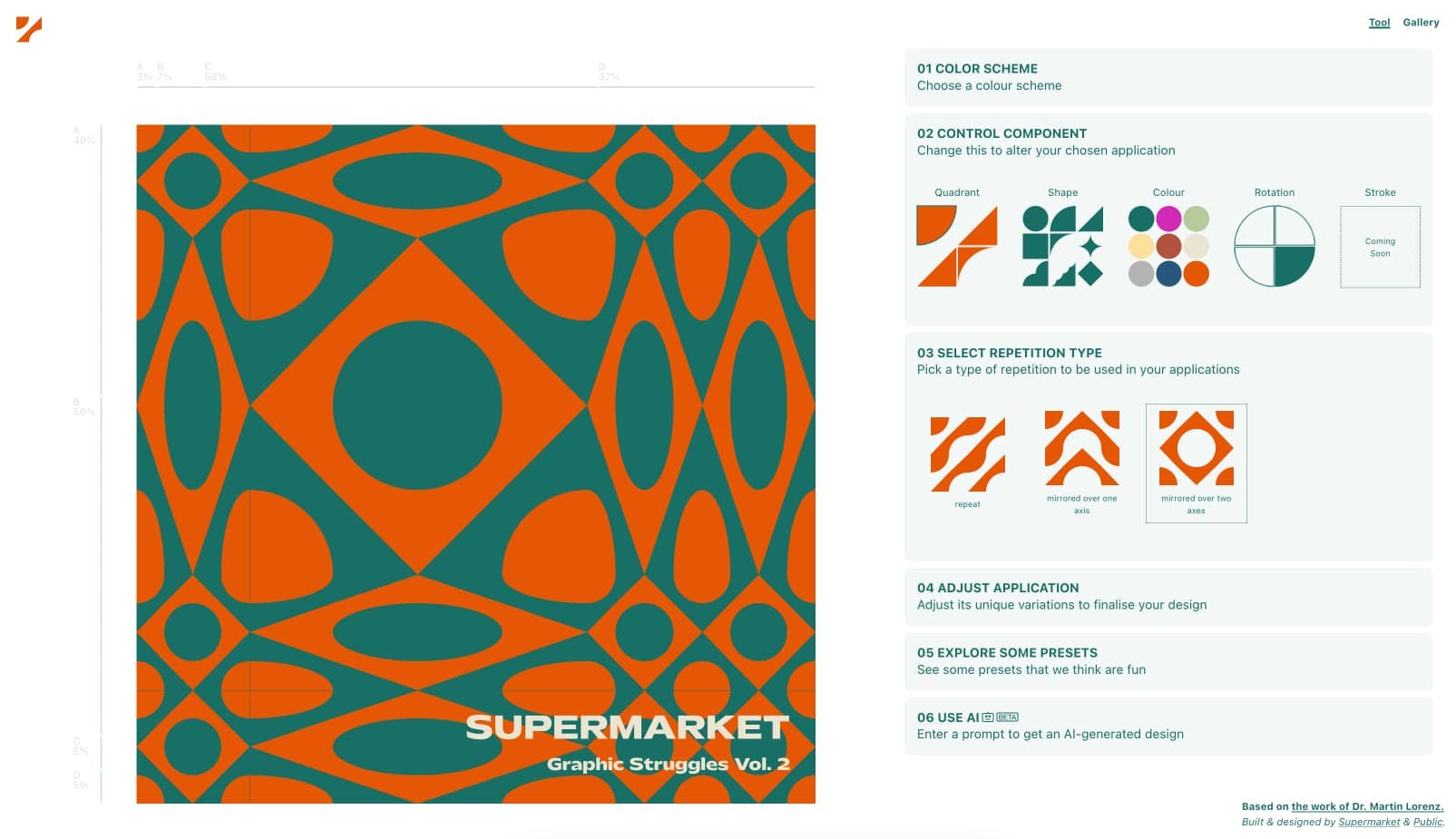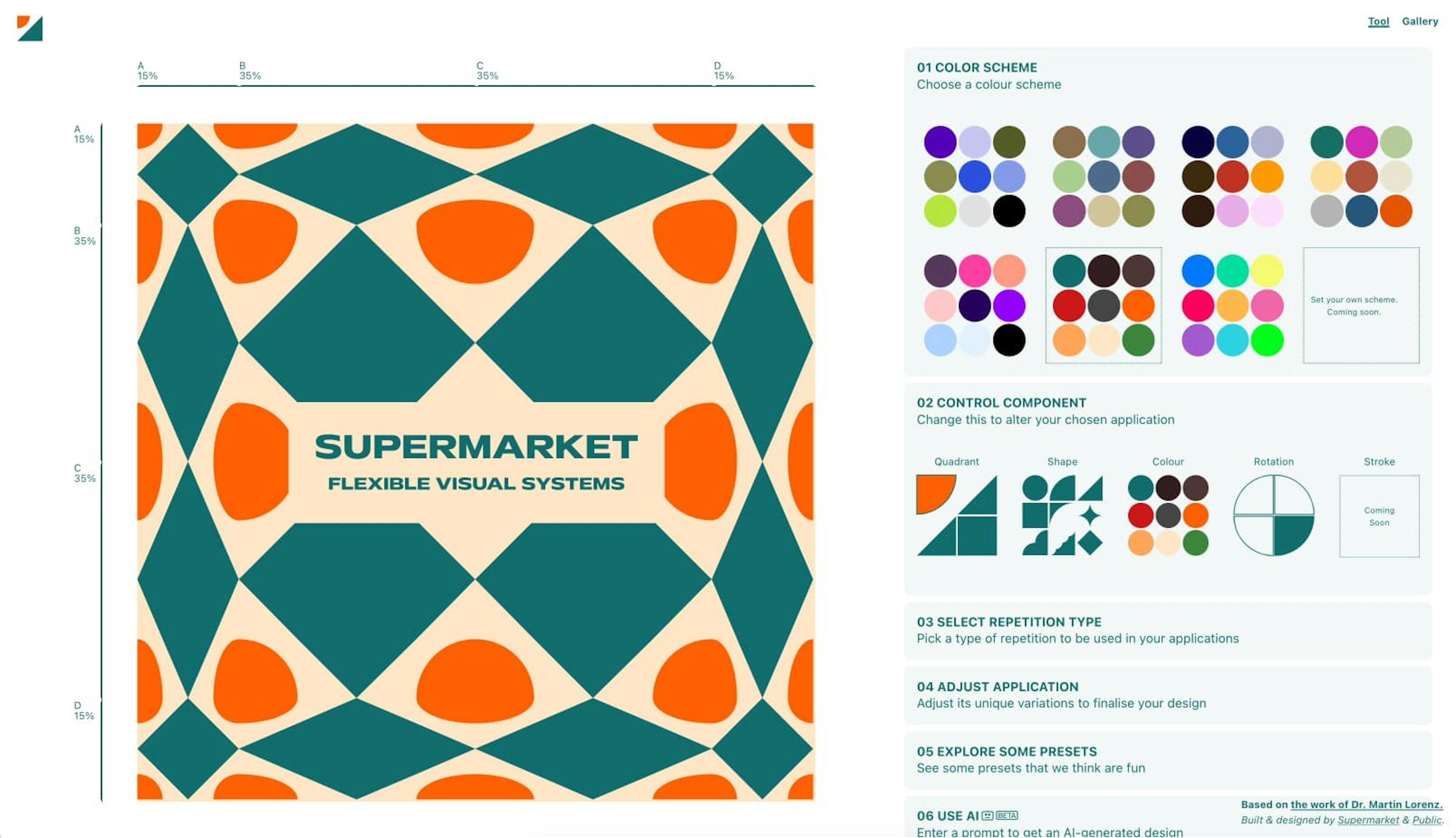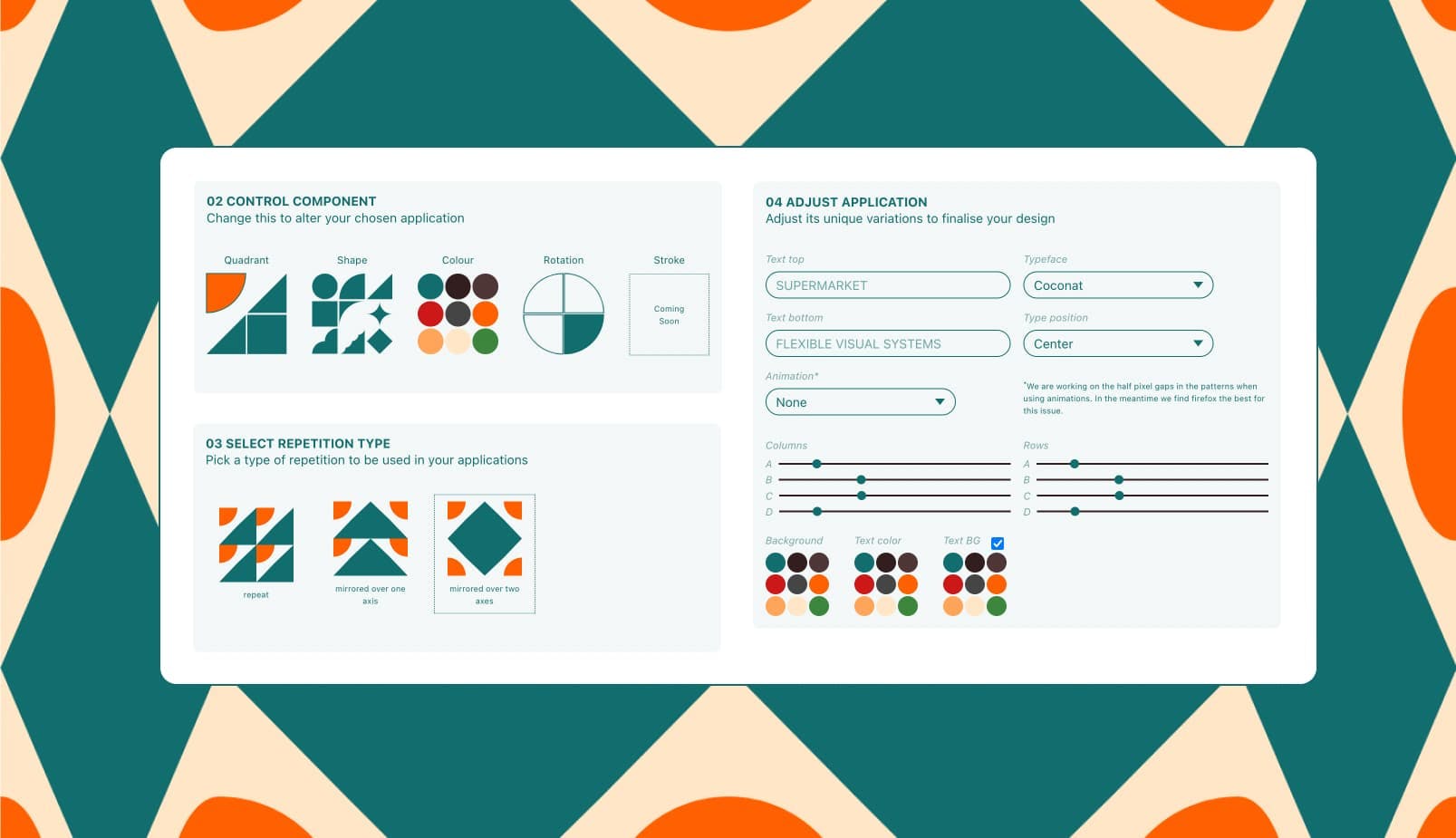 Inspiration for the tool came from Dr Martin Lorenz’s book entitled Flexible Visual Systems which explores a variety of approaches on how to design flexible systems, adjustable to any aesthetic or project in need of an identifiable visual language.