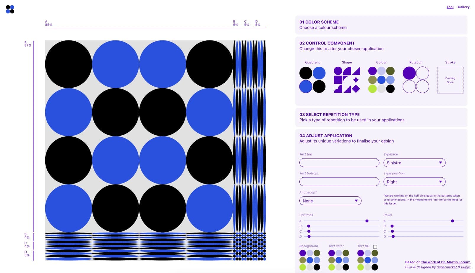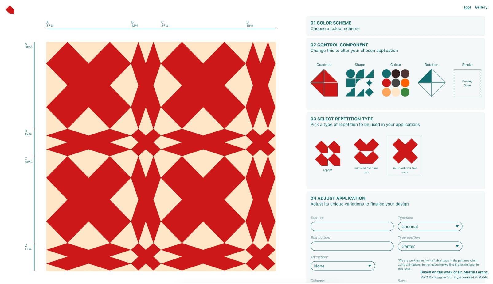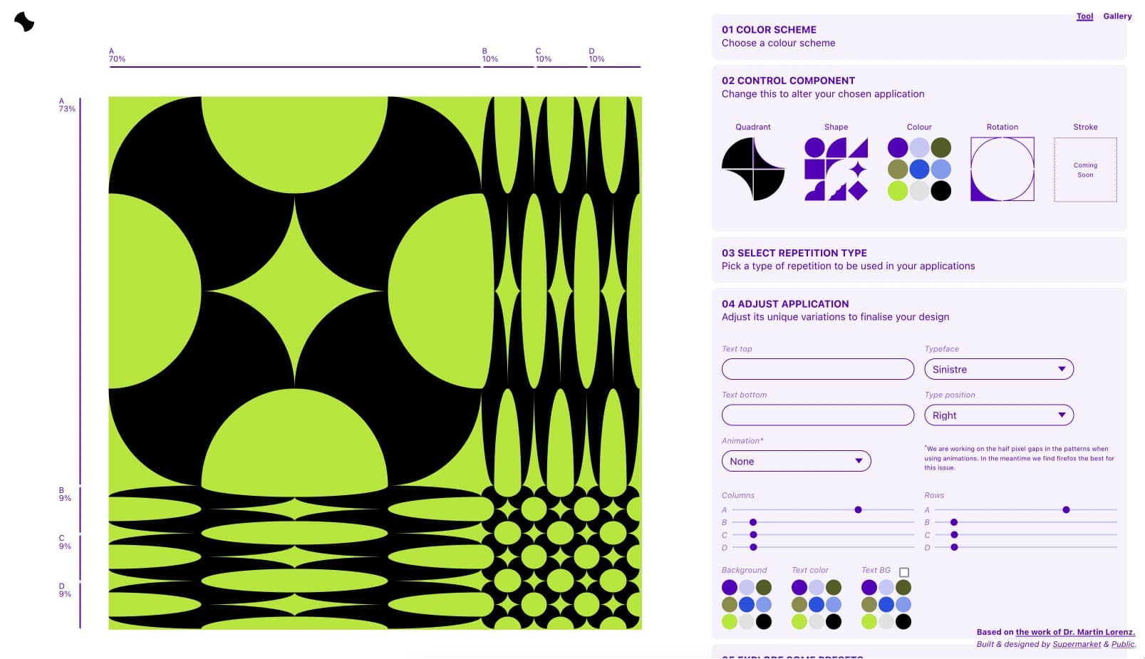 Inspiration for the tool came from Dr Martin Lorenz’s book entitled Flexible Visual Systems which explores a variety of approaches on how to design flexible systems, adjustable to any aesthetic or project in need of an identifiable visual language.