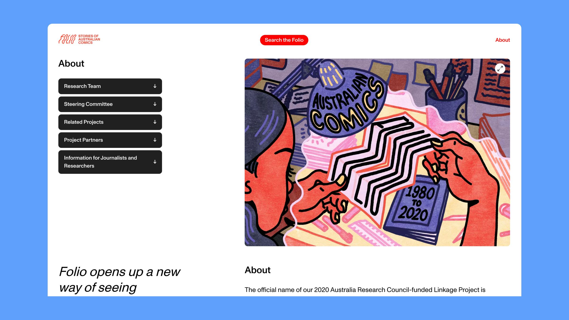Working with our design partners Public Websites, we delivered Folio Comics with an immersive, searchable digital index to showcase the vast quantities of research content, interviews and artwork all related to the Australian contemporary comics scene.