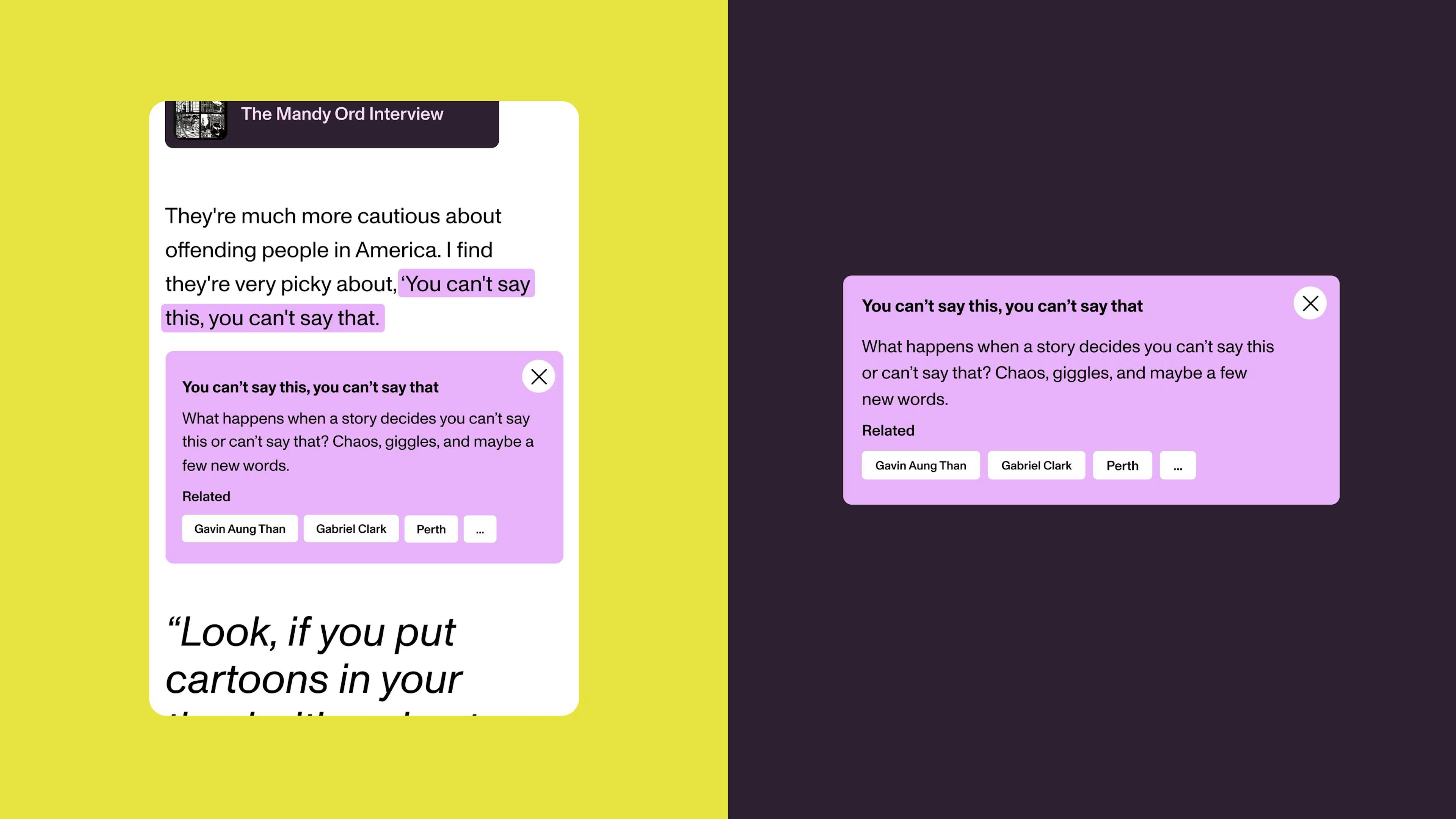 The in-text mention cards. Editors highlight the text in Prismic and link it to an item. The code does the rest.