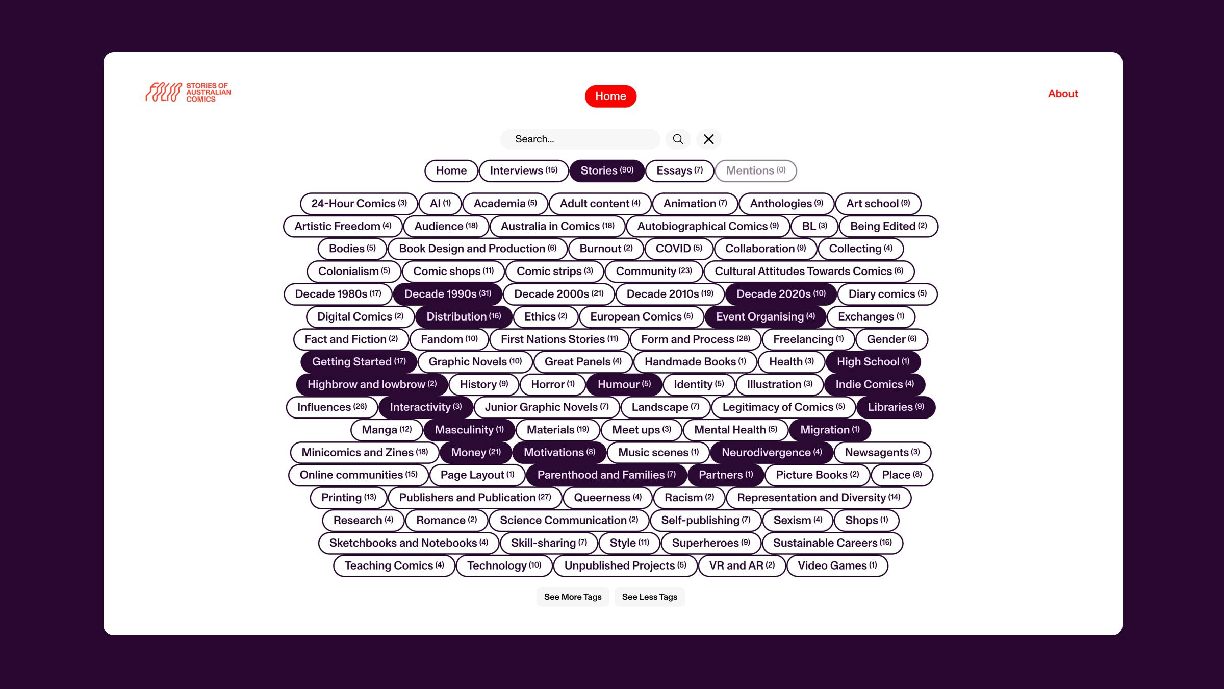 That's a lot of tags! The archive is built around these connections between content.
