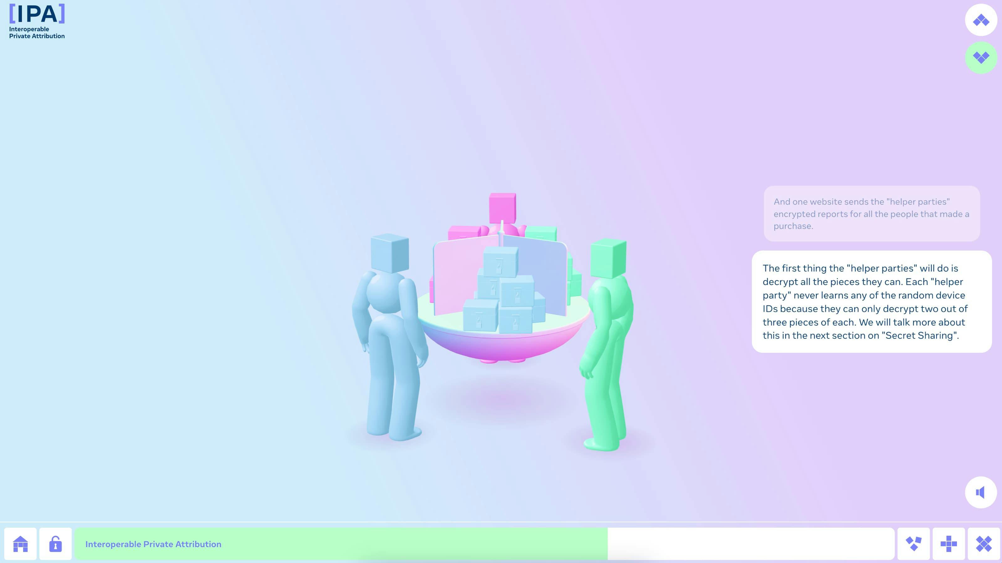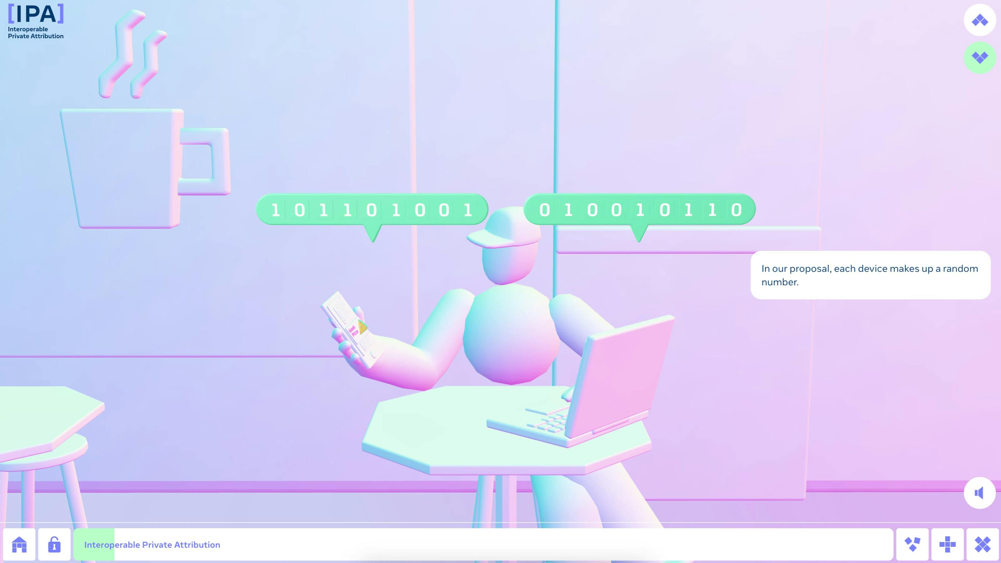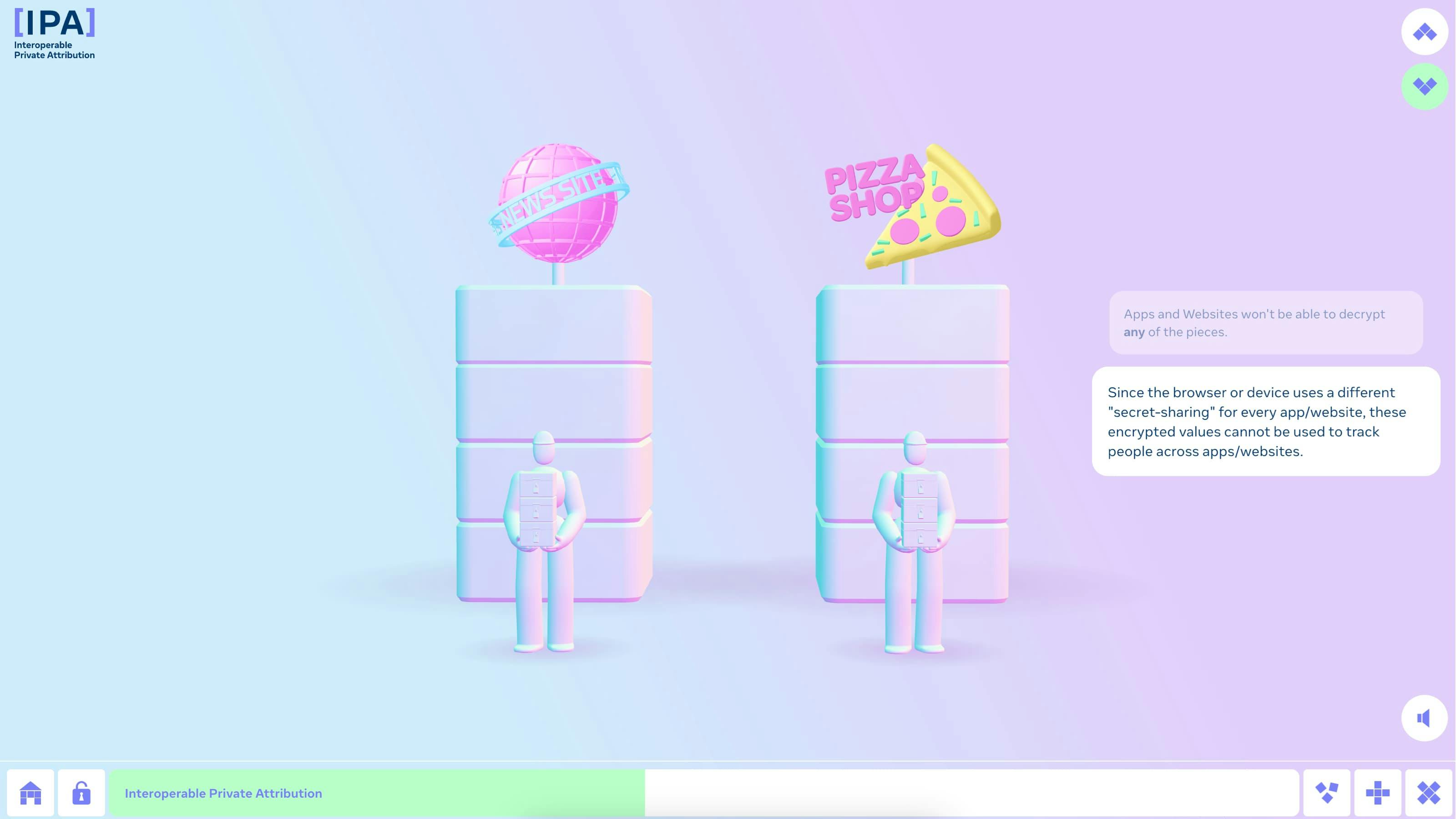 A team of cryptographers at Meta are developing a proposal for measuring ads where everyone’s browsing history remains private. They call it ‘Interoperable Private Attribution’ (IPA). Supermarket worked with this team to develop a scrolling 3D animated explainer.