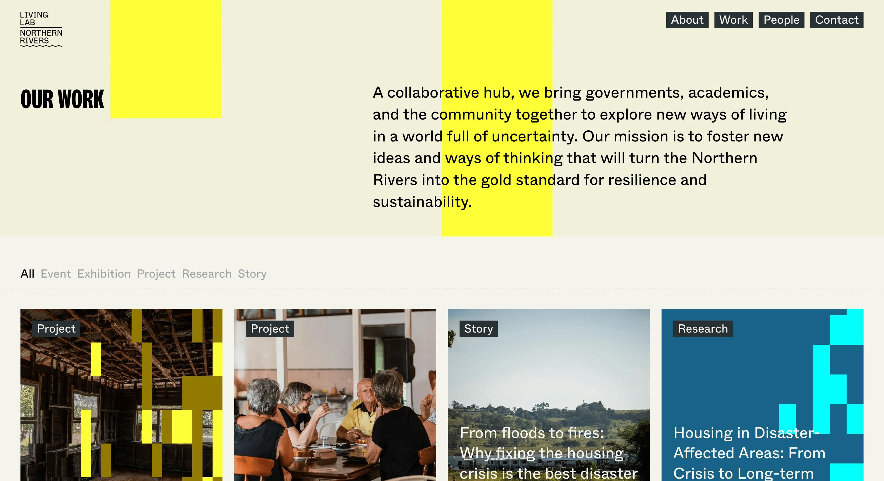 Together with Public Websites, we built a new site for Australian collective, Living Lab Northern Rivers. We dug into our library of flexible modules and combined them with a custom built asset generation tool to deliver a fast, light, and searchable website with a strong visual identity.