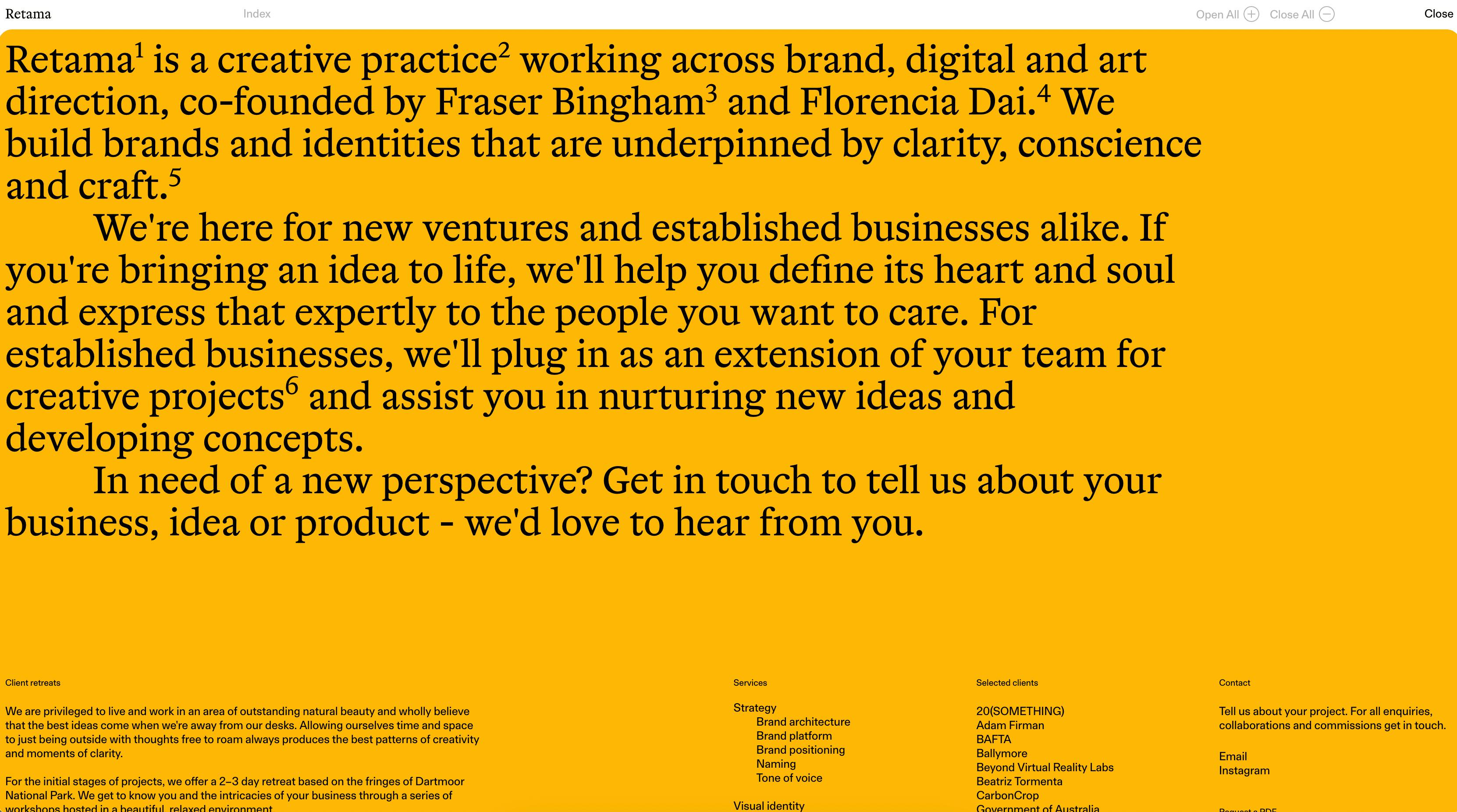 We had a great time working interactivity into this clean and minimal yet lively archive site for our friends at the Devon-based creative studio, Retama.