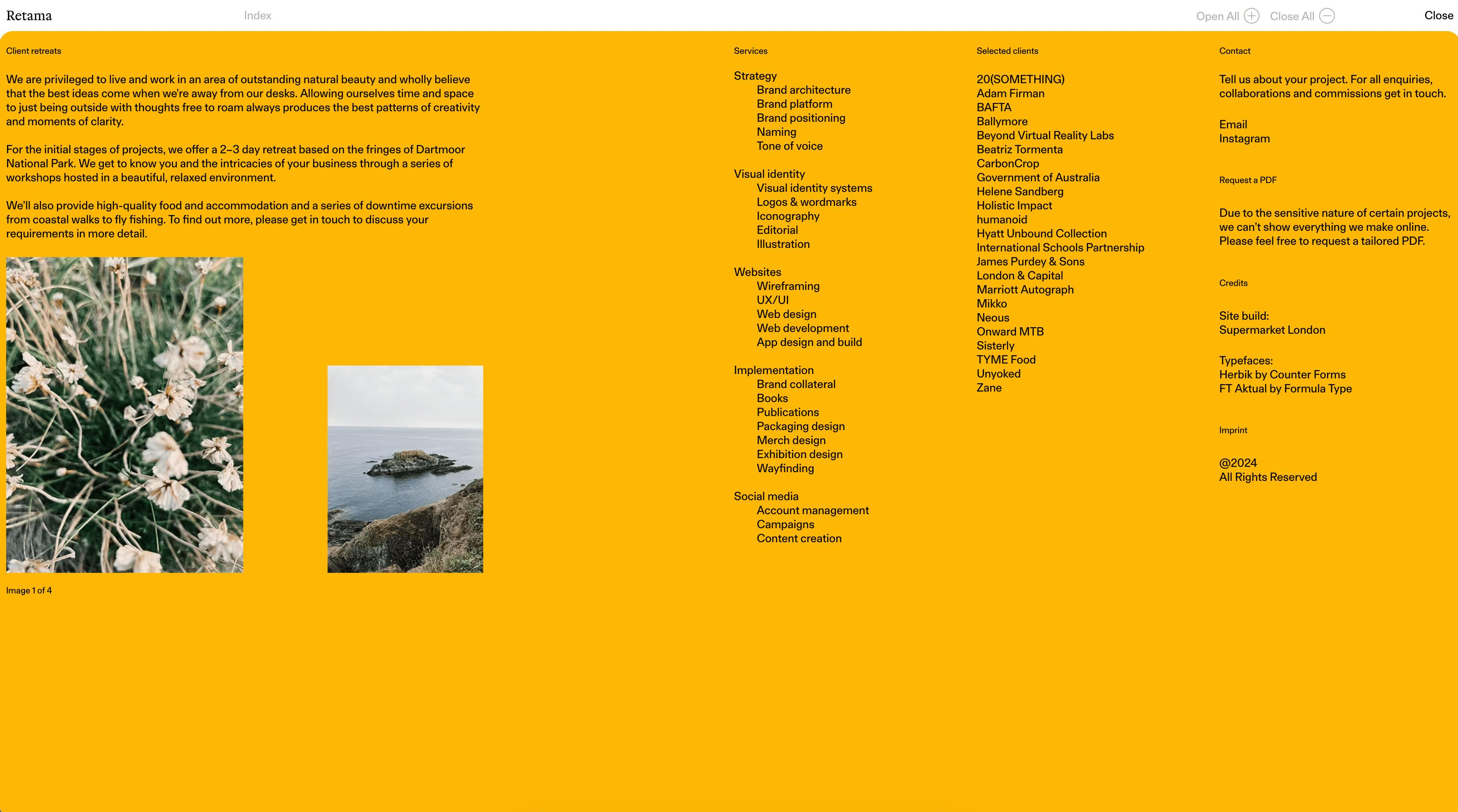 - And a stripped-back lightbox slideshow module that brings Retama’s curation and creative art direction to the fore.