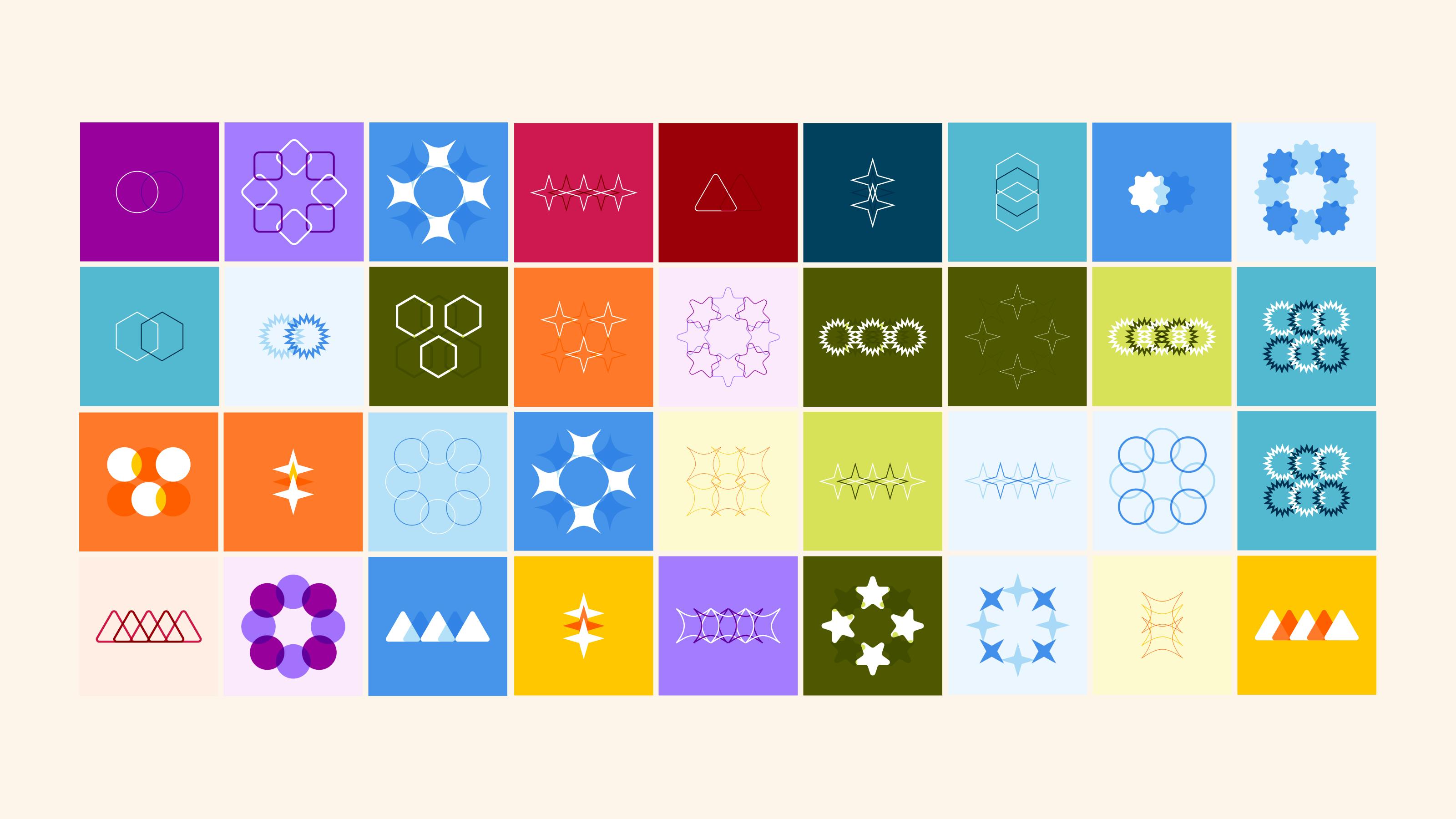The tool that we built is simple, each image is a random combination of a curated selection of geometric shapes, colour sets, and css layouts.